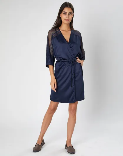 Wählen Sie einen marinebrainen Satinkimono