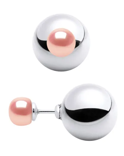Zweiseitige Silberohrringe mit natürlichen rosa Süßwasserzuchtperlen