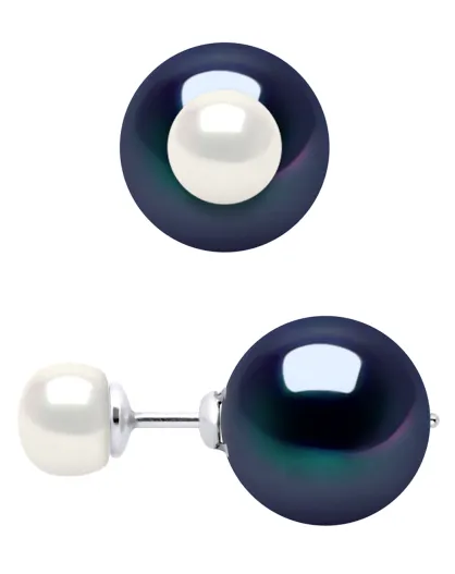 Zweiseitige Ohrringe aus Silber und Süßwasser-Zuchtperlen, schwarze Tahiti/weiße Perle