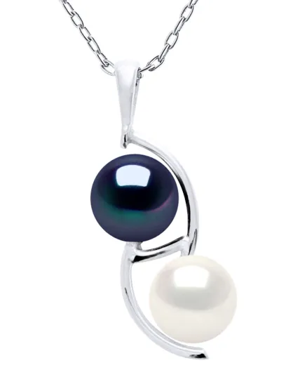 Duo-Halskette mit Süßwasser-Zuchtperlen aus Silber und weißen Perlen