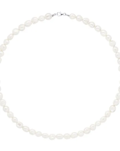 Silberne Halskette mit weißen Süßwasser-Zuchtperlen aus Perlmutt