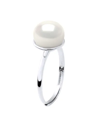 Verstellbarer Ring mit silbernem Armreif und weißer Süßwasserzuchtperle aus Perlmutt