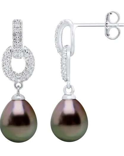 Ohrringe aus Regenbogen-Silber und Tahiti-Zuchtperlen