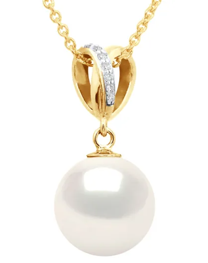 Doppelknotenanhänger aus Gelbgold, Diamanten und Perlmutt, Süßwasser-Zuchtperle