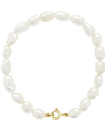 Armband aus Gelbgold mit weißen Süßwasser-Zuchtperlen aus Perlmutt
