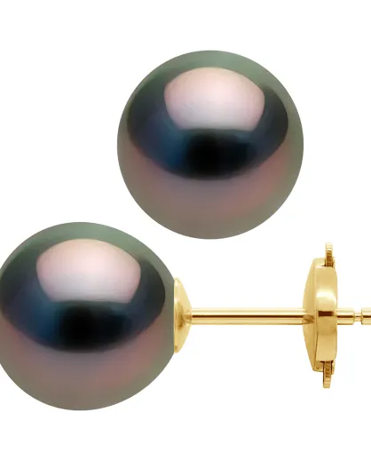 Prestige-Ohrringe aus Gelbgold und Tahiti-Zuchtperlen in Regenbogenfarben