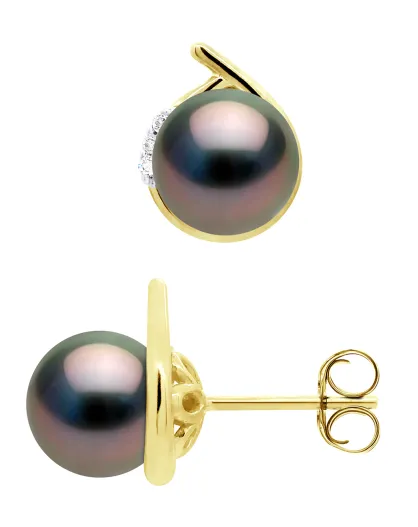 Entourage-Ohrringe aus Gelbgold, Diamanten und Tahiti-Zuchtperlen, Regenbogen