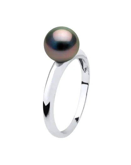 Ring aus Weißgold und schwarze runde Tahiti-Zuchtperle