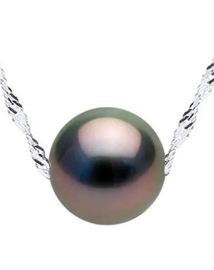 Prestige-Halskette aus Weißgold und Tahiti-Zuchtperle rund aus schwarzem Tahiti