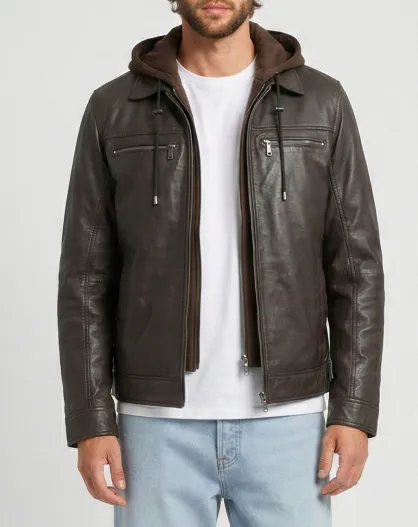 Braune Lederjacke mit Kapuze