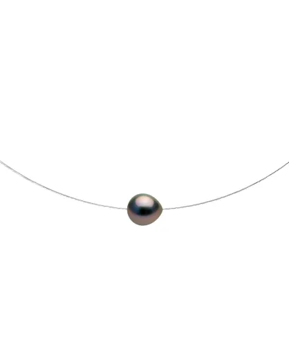 Runde Tahiti-Zuchtperlenkette aus Weißgold und Schwarz