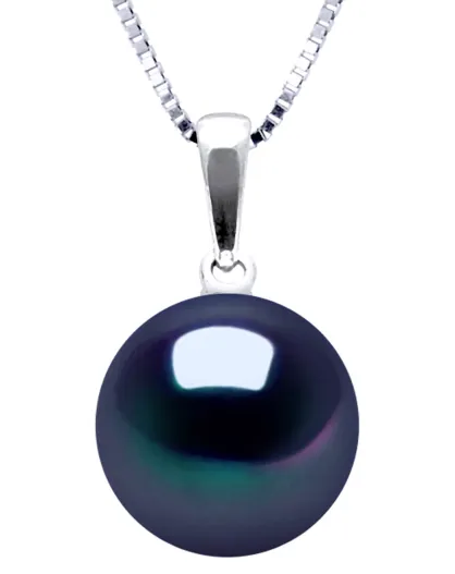 Anhänger aus Weißgold und runder schwarzer Süßwasser-Zuchtperle