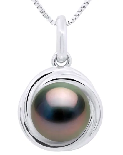 Runder Tahiti-Zuchtperlenanhänger aus Weißgold und Schwarz