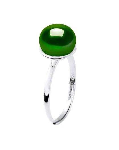 Armreif aus Rhodiumsilber und dunkelgrüner Süßwasser-Zuchtperle