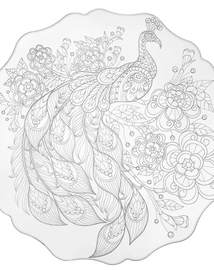 Tasty Peacock Großer runder Teller transparent/weiß - 32,5x34,5 cm