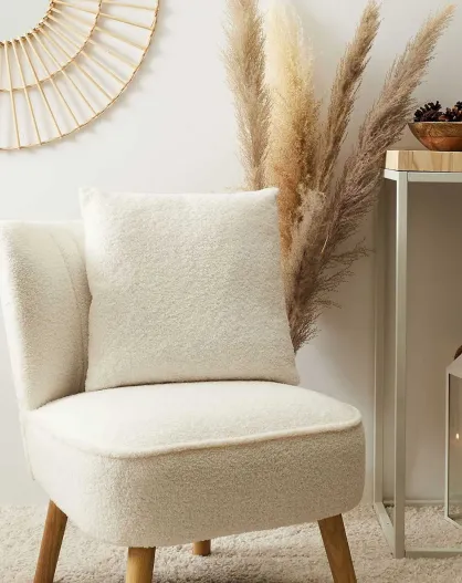 Abnehmbares cremefarbenes Bouclette-Kissen, 40 x 10 x 40 cm