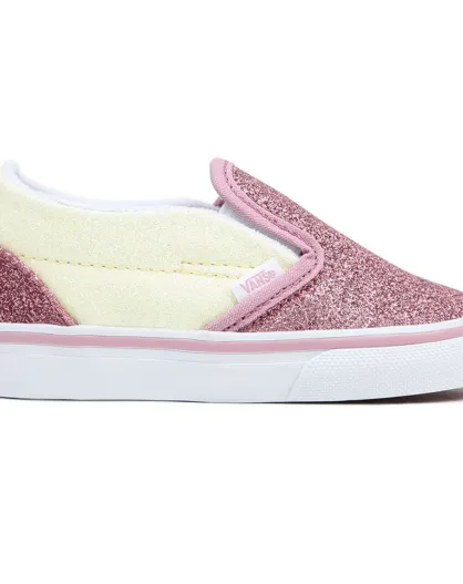 Slipper mit V-Ausschnitt aus Leder und Textil in Rosa/Gelb