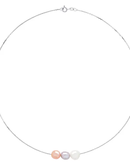 Halskette aus Rhodiumsilber und natürliche weiße halbrunde Süßwasser-Zuchtperlen