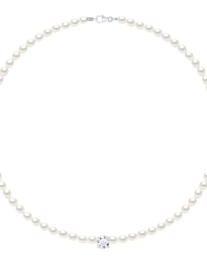 Halskette aus Rhodium-Silber und Süßwasser-Zuchtperlen, natürliche weiße Reiskörner