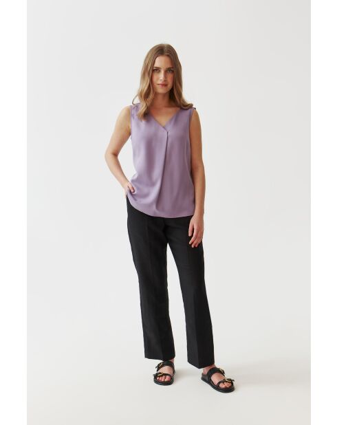 Fließende Bluse mit Puffärmeln und pflaumenblauem Muster