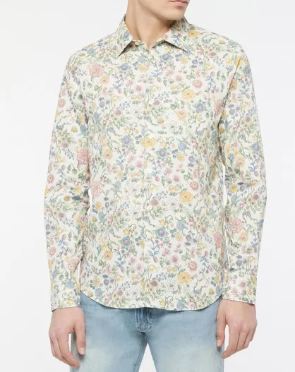 Weißes Hemd aus Leinen und Baumwolle mit Blumenmuster