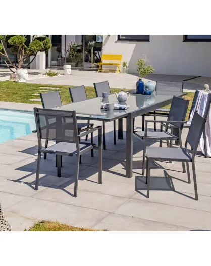Gartenset TOLEDE Tisch 8 Personen Anthrazitgrau