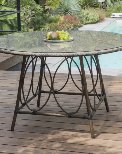 Runder Gartentisch Ushuaia aus braunem Aluminium und braun/grauem Textilene - d 125x74 cm