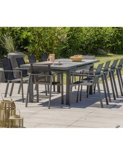 Gartenset VENISE-TB250 Tisch mit Verlängerung + 10 stapelbare ALU-MIAMI-FT Sessel Anthrazitgrau
