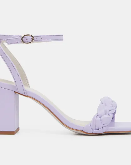 Hellviolette Ledersandalen mit geflochtenem Riemen - Absatz 7 cm