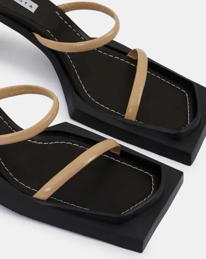 Beigefarbene Pantoletten aus Lackleder - 6 cm Absatz