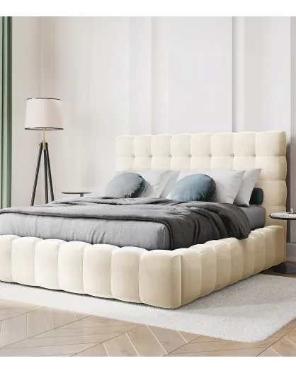 Hellbeiges Bett Bali Velvet mit Stauraum - 160x200 cm