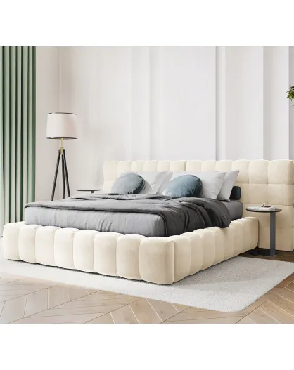 Hellbeiges Bett Bali Velvet mit Stauraum - 160x200 cm