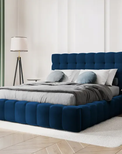 Königsblaues Bett Bali Velvet mit Aufbewahrungsbox, 200 x 200 cm