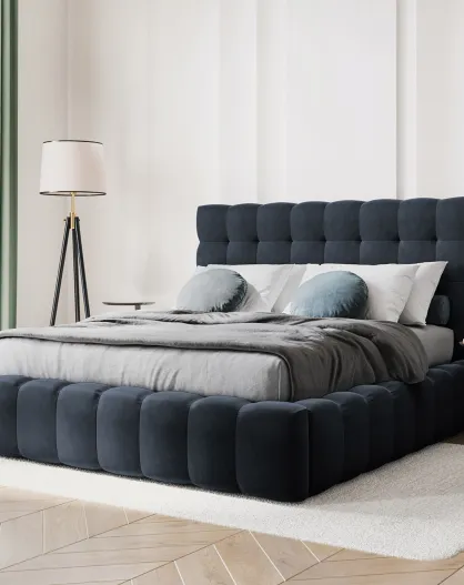 Dunkelblaues Bett Bali Velvet mit Aufbewahrungsbox - 200x200 cm