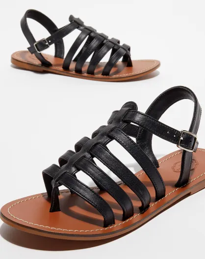 Schwarze Ledersandalen Sophie