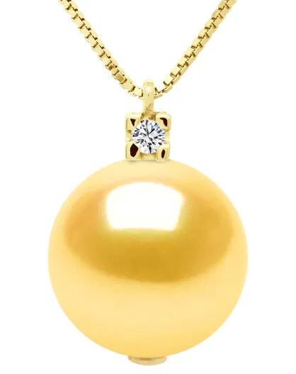 Halskette aus Gelbgold, 0,02 ct Diamant und runde Süßwasserzuchtperle aus Gold