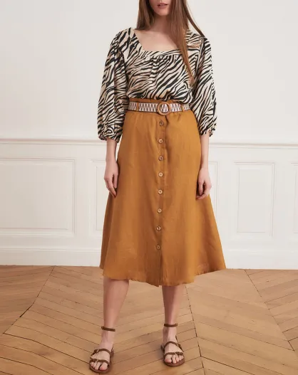 Josselin Dunkelockerfarbener Rock aus 100% Leinen
