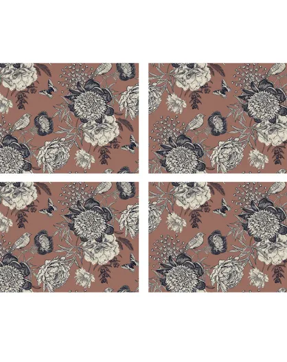 4 rechteckige Vogel-Tischsets 7 mehrfarbig - 30x45 cm