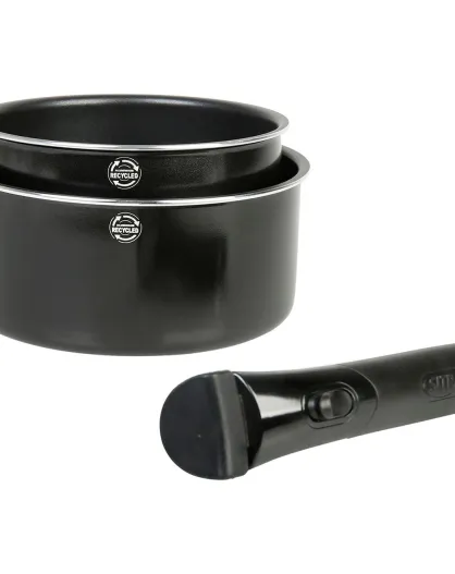 2 Pfannen mit abnehmbarem, gepresstem Griff Family Induction schwarz - D.16/20 cm