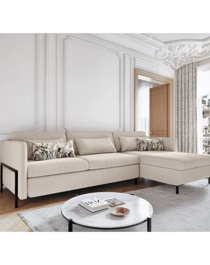 Yanis Ecksofa für 5 Personen, umwandelbar, rechts, mit Box, 280 x 170 x 80 cm, Beige