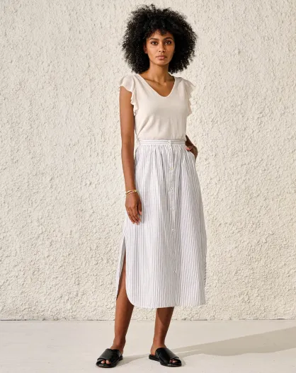 Hellgrauer gestreifter mittellanger Rock aus Arizona-Baumwollmischung