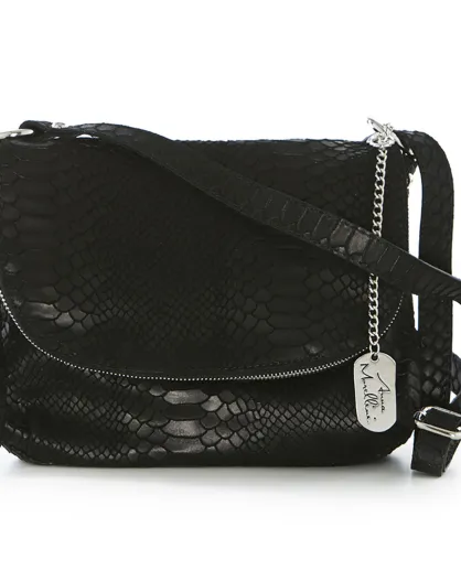 Elena Schultertasche aus schwarzem Leder - 28x20x8 cm