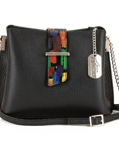 Vida Schultertasche aus schwarzem Leder - 22x17x10 cm