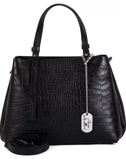 Schwarze Isabella Lederhandtasche - 30x21x12 cm