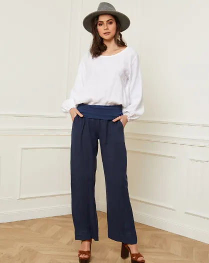 Astrid marineblaue Hose aus 100% Leinen