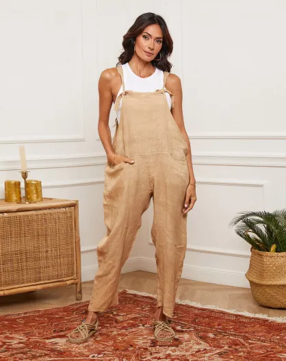 Camelfarbener Jumpsuit Corida aus 100% Leinen