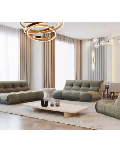 Gemütliches 4-Sitzer-Sofa aus olivgrünem lockigem Stoff - 210x112x80 cm