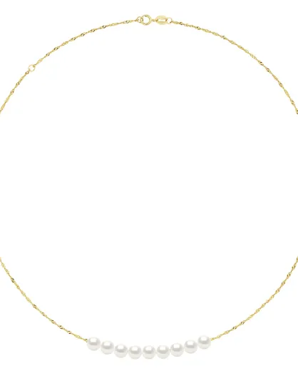 Halskette aus Gelbgold und natürliche weiße runde Süßwasser-Zuchtperlen