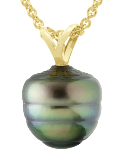Anhänger mit eingekreisten Tahiti-Zuchtperlen aus Gelbgold und Schwarz