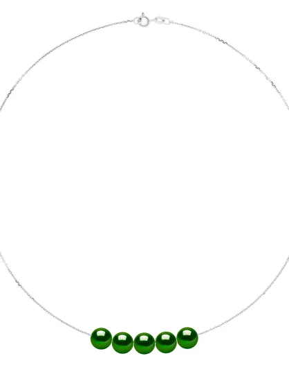Halskette aus Rhodiumsilber und grüne, runde, kreuzende Süßwasser-Zuchtperlen in Malachitgrün
